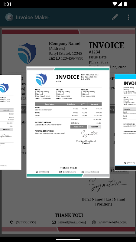 برنامه Invoice Maker تولید کننده فاکتورها، تخمین ها، نقل قول ها و سایر اسناد است.