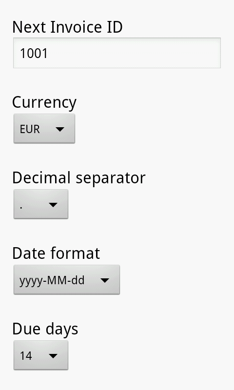 - Changed storage from app internal storage to app external storage for users to easier gain access to generated invoices.