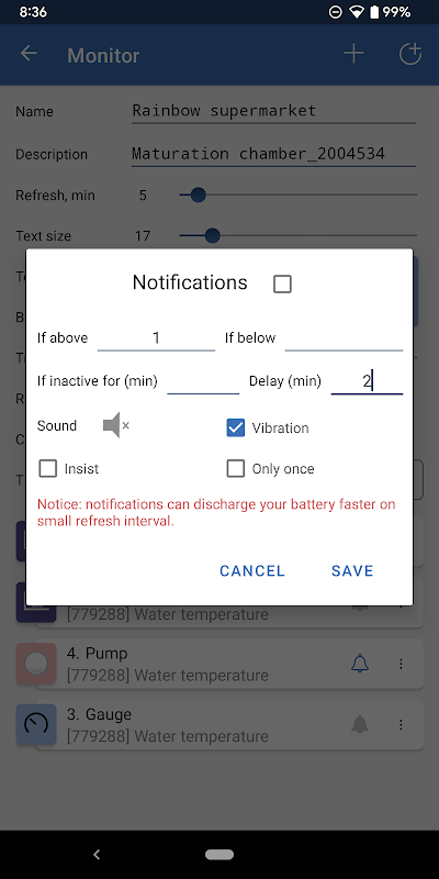 برای تجسم نمودارها، برنامه از دو روش استفاده میکند - ThingSpeak™ نمودار وب API یا کتابخانه MPAndroidChart. اولین مورد به طور پیش فرض استفاده می شود. متأسفانه از بزرگنمایی پشتیبانی نمی کند و فقط یک نمودار را می توان به طور همزمان نشان داد. کتابخانه MPAndroidChart امکان ساخت نمودارهای متعدد بر روی یک صفحه را فراهم می کند و از بزرگنمایی پشتیبانی می کند.