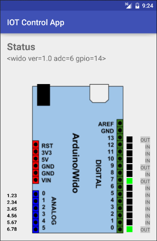 The IOT WiFi Controller uses your phone's WiFi to connect to and control output on embedded boards. Sample code is tested and provided for Arduino and Wido boards at http://iot.pennyjar.ca
