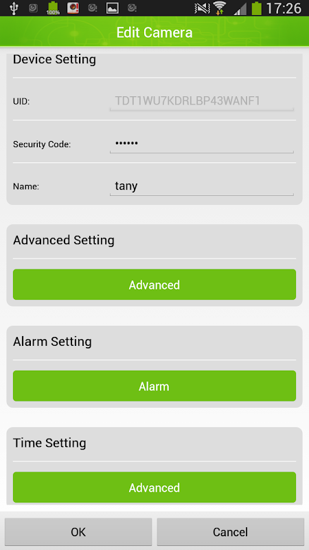 此apps通过P2P模式远程连接到网络摄像机,进入实时观看视频,当网络摄像机触发报警时,会推送报警信息到手机,手机点击推送消息可以查看到云端报警抓拍图片。