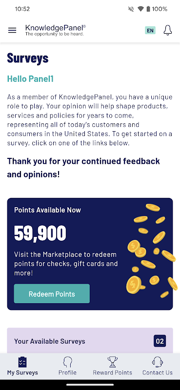 هر زمان که خواستید به نظرسنجی های KnowledgePanel پاسخ دهید و فقط با چند ضربه از جوایز استفاده کنید.