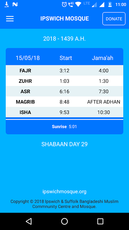 The App provides prayer times and Jama’at for Ipswich Mosque.
