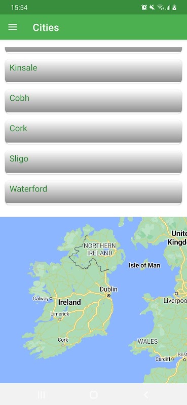 ویدئوهای ارائه همه مکان ها در Google Maps نشان داده شده اند تا بتوانید آنها را به راحتی پیدا کنید. برای شهرهای ارائه شده کاربران می توانند پیش بینی آب و هوا را برای آن روز مشاهده کنند. همچنین، بخش خبری وجود دارد که جالب ترین داستان های ایرلند را در حال حاضر نشان می دهد.