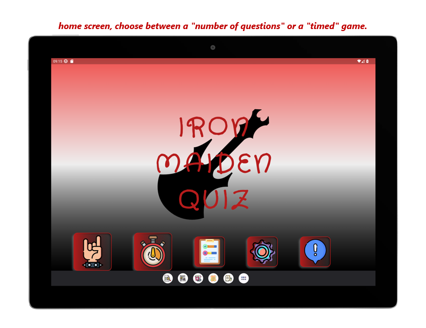 با بیش از 450 سوال، این برنامه دانش شما را از گروه موسیقی راک بریتانیایی Iron Maiden میآزماید، دو روش برای اجرای مسابقه وجود دارد، یا از طریق "تعداد سوالات" یا یک بازی "زمان بندی شده".