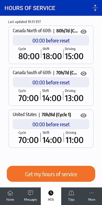 • دقیقاً بدانید که چه زمانی ساعت سرویس (HOS) شما به ثانیه تنظیم مجدد می شود