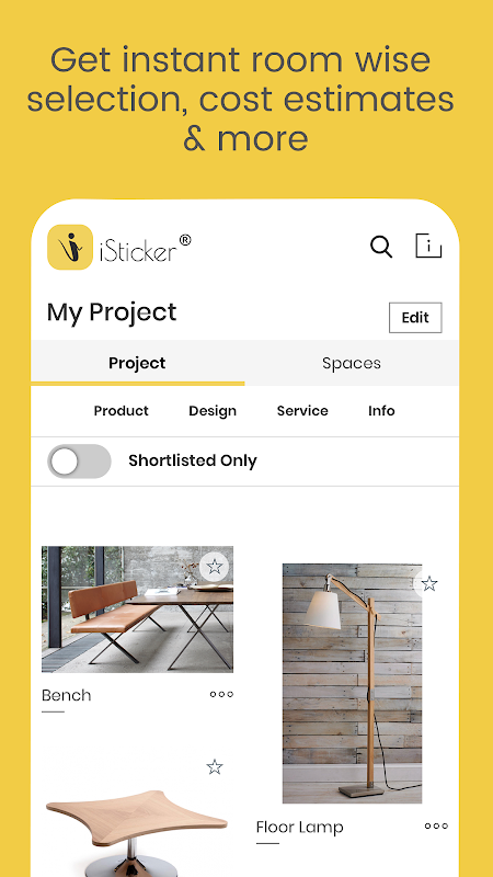iSticker is an innovative interior and architecture design tool. As the Homeowners, Architects, interior designers and interior decorators select products & designs, they can stick them onto their projects and instantly get room wise selection, Moodboards and cost estimates. This helps them to save time in arranging their selection for better visualization and make cost estimates manually. This helps in saving time and project design an easy and fun task.