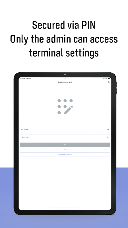 ترمینال ITM با یک کد پین ایمن شده است که تنها مدیر می تواند به تنظیمات و تنظیمات ترمینال دسترسی داشته باشد.