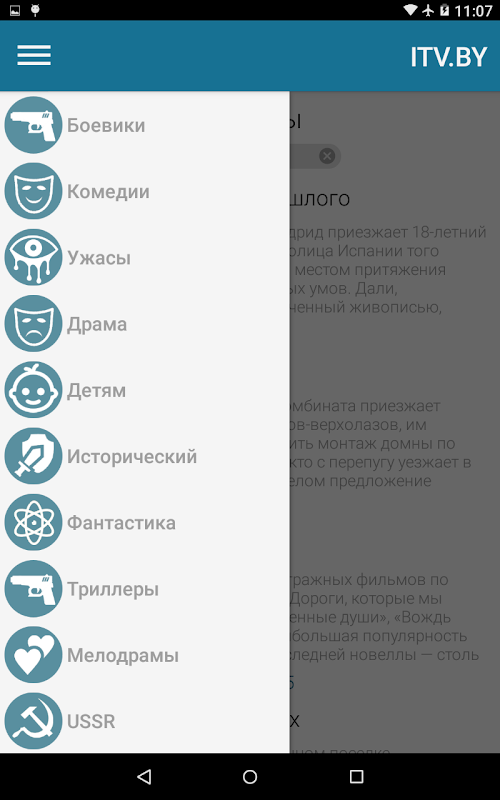 Приложение медиаплатформы ITV.BY для планшетов, которое позволяет смотреть ТВ-каналы и фильмы