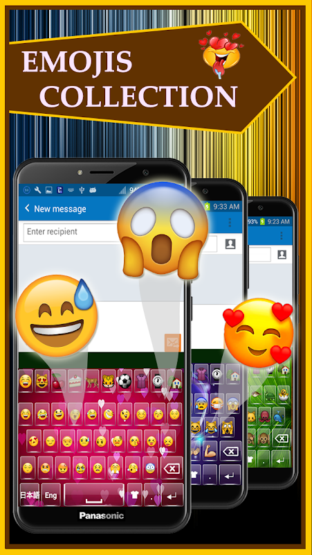 صفحه کلید ژاپنی صفحه کلید تایپ آمیزی با چشمانداز تم ها و emojis است.