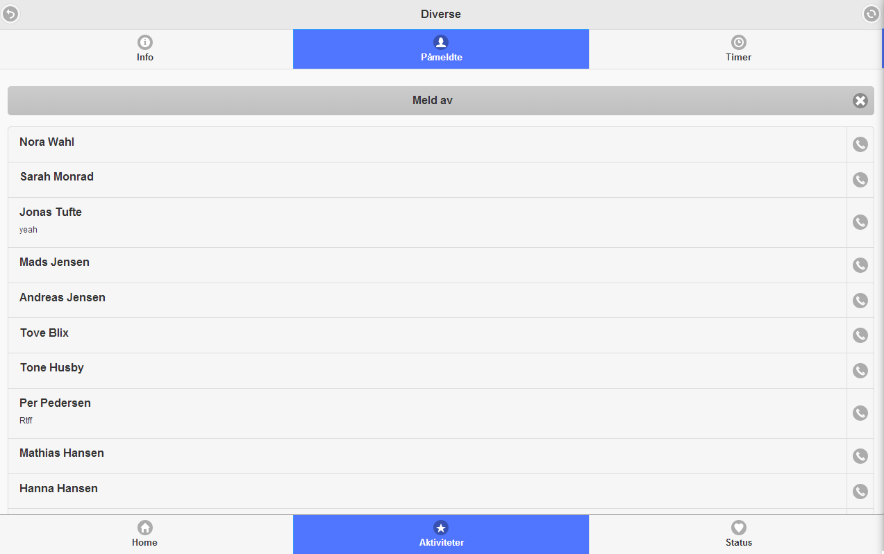 Påmelding til aktiviteter og timeregistering