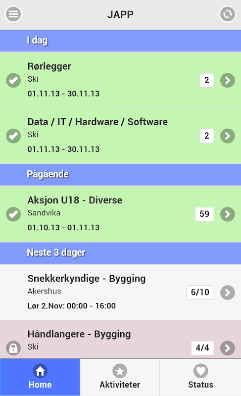 JAPP - App for aktivitetsweb.