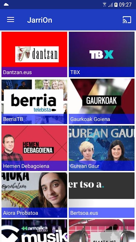 باسک سمعی و بصری کانال های متعدد ویدئو، تلویزیون های عمومی، ETB، یازده تلویزیون، در حالی که رقص، Gaztezulo و دیگر رسانه ها، و همچنین به عنوان باسک هنرمندان ویدئو جوان است. مشاهده ویدئو موبایل، و دستگاه Chromecast (39 یورو trastoa است) اگر شما، و همچنین در تلویزیون است.