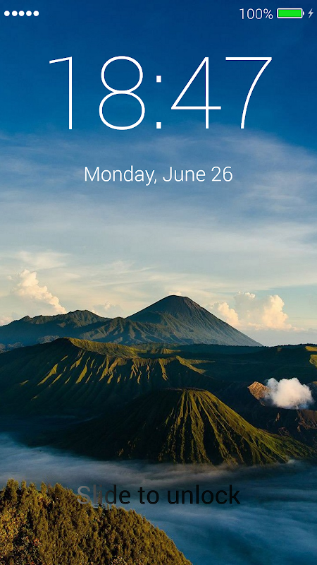 Slide To Unlock Lock screen with amazing landscapes of Java island.