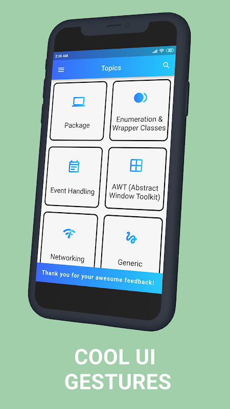 این برنامه دارای 25 موضوع جاوا و بیش از 700 سوال برای کمک به شما در طول سفر است.