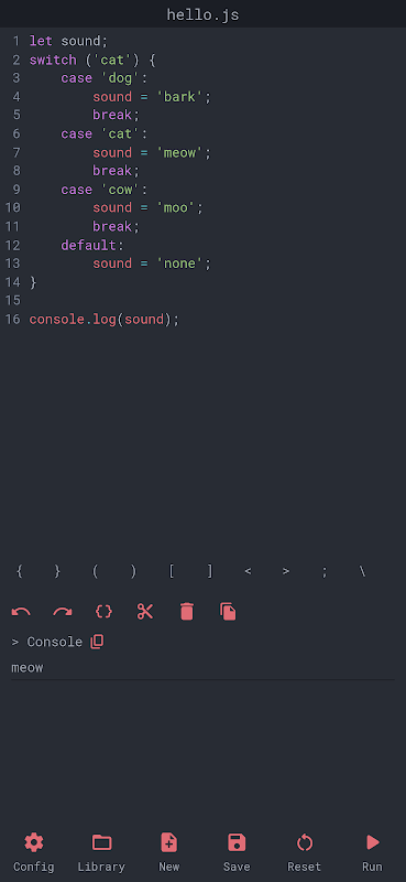 ویرایشگر کد جاوا اسکریپت مینیمالیستی که به شما امکان می دهد اسکریپت های کنسول را در حال حرکت از دستگاه تلفن همراه خود اجرا کنید.