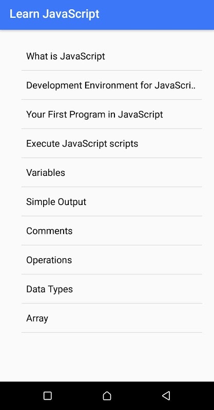 this application give you a very simple introduction to start with JavaScript By viewing the following themes: