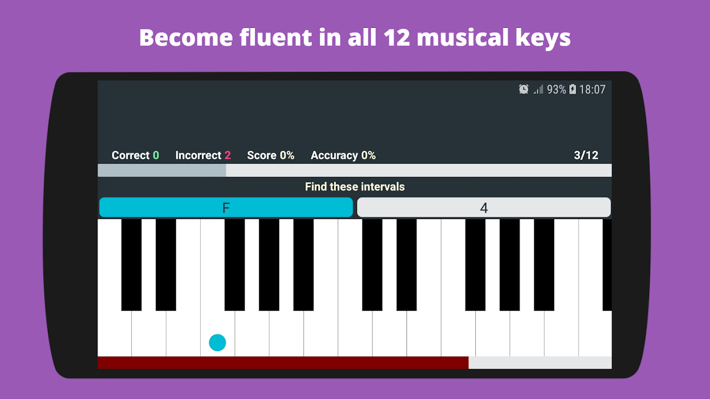 برای هر فاصله / پیشرفت، هدف این است که تمام کلیدها را کامل کنید و دقت 100٪ را دریافت کنید.