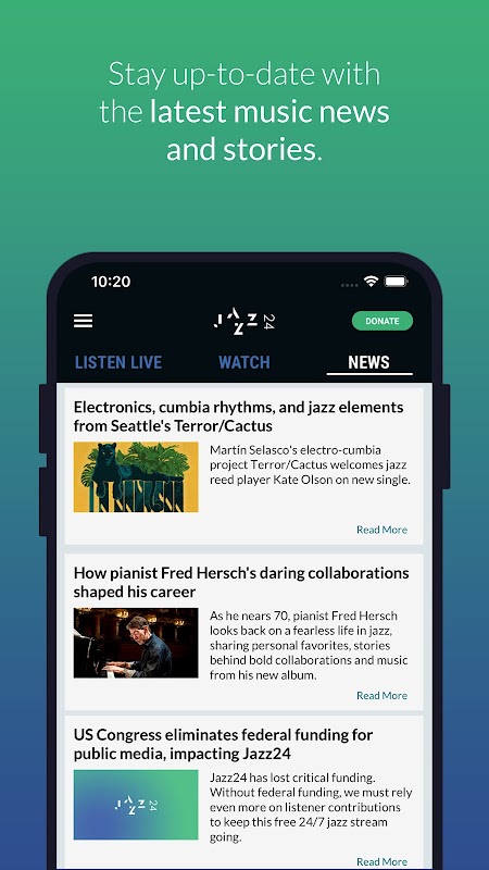 • آخرین اخبار و ویژگی های جاز — از آخرین اخبار جاز و پروفایل های هنرمندان Jazz24، KNKX و NPR Music به روز باشید.