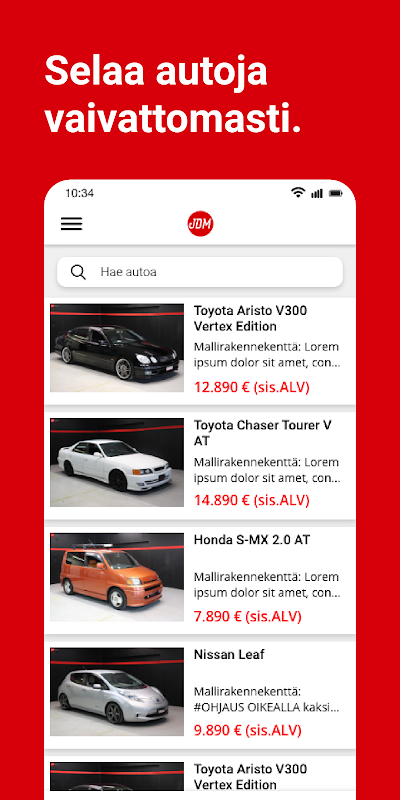 با استفاده از برنامه JDM Outlet ، می توانید انتخاب اتومبیل ما را با یک نگاه ، و همچنین اطلاعات و تصاویر اضافی در فروش را مشاهده کنید.