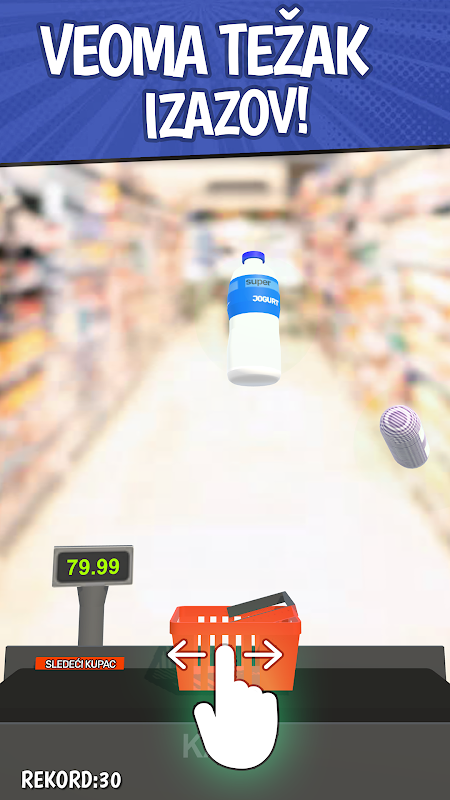 Kontroliši potrošačku korpu sa prstom، levo i desno.