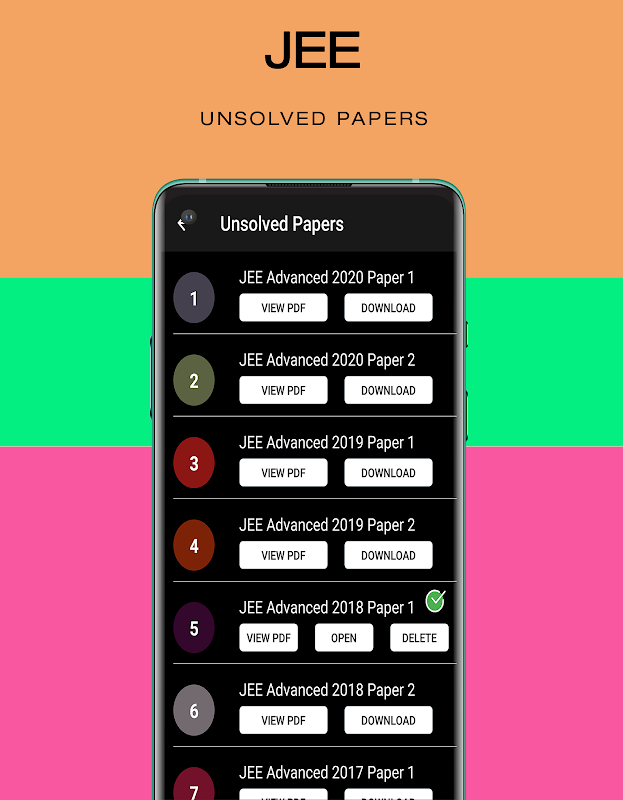 • در این برنامه، سوالات حل نشده پیشرفته JEE برای سالهای 2007 تا 2020 را دریافت خواهید کرد.