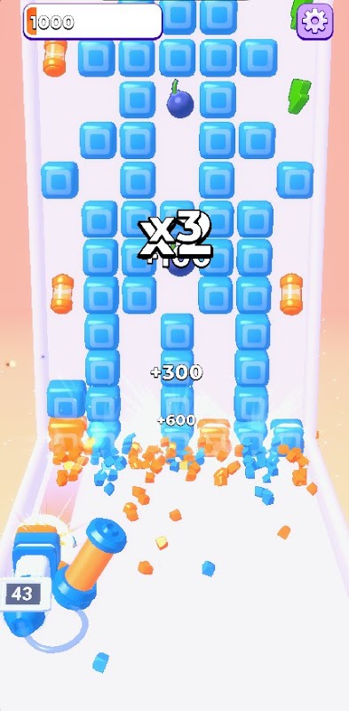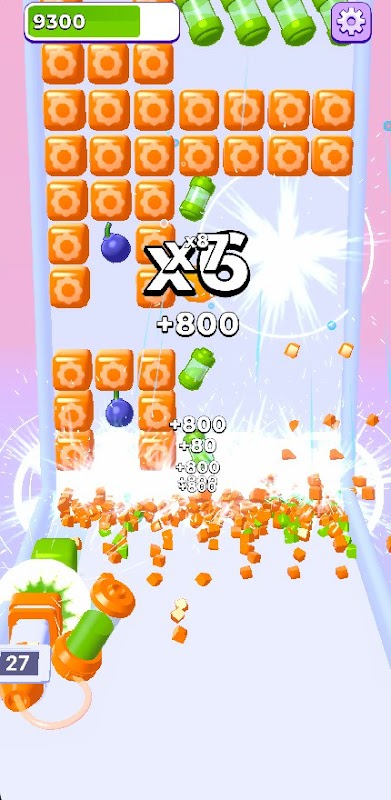 Shoot to block wall. Assemble a complete line. Collect various bonuses. Refill your ammo. Arrange vertical and horizontal explosions. Destroy the block wall!
