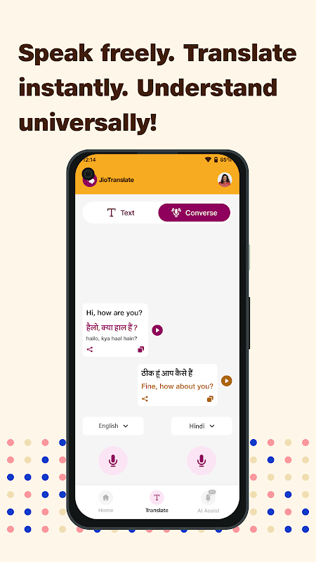 JioTranslate یک سرویس ترجمه زبان پیشرفته است که برای نیازهای زبانی مختلف هند طراحی شده است و امکان برقراری ارتباط بیدرنگ از طریق بلندگو یا پیامهای صوتی و حتی از طریق تماسهای صوتی را فراهم میکند. با پشتیبانی از بیش از 12 زبان اصلی، شکاف های ارتباطی را به طور یکپارچه پر می کند و به افراد امکان می دهد به زبان مادری خود صحبت کنند و در عین حال تبادل فرهنگی و همکاری در سراسر کشور را تسهیل می کند. مسافران داخلی و بین المللی نیز می توانند برای ترجمه صوتی فوری به JioTranslate اعتماد کنند و تعاملات و تجربیات خود را در حال حرکت افزایش دهند.
