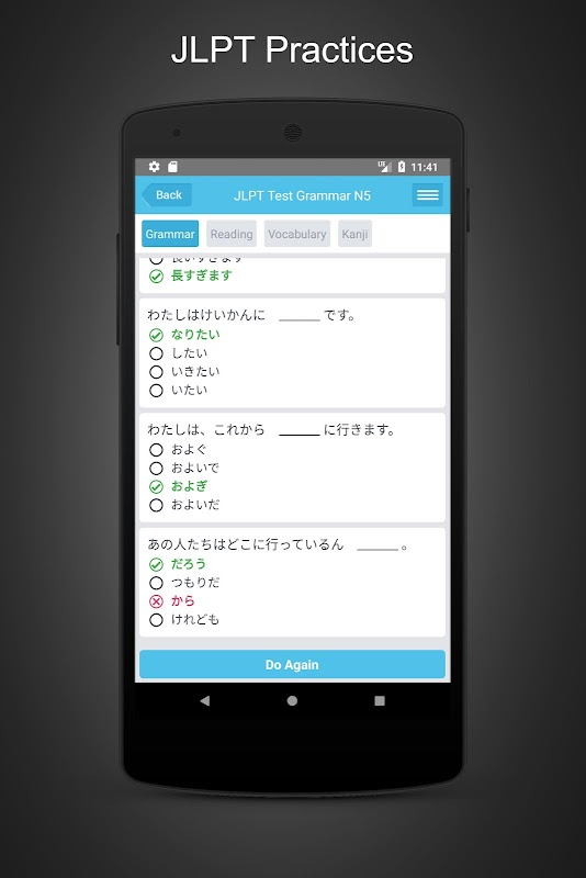 JLPT تمرین به شما کمک خواهد یادگیری ژاپنی به راحتی نیز ژاپنی خود را تقویت از طریق واژگان مسابقه و مسابقه کانی.