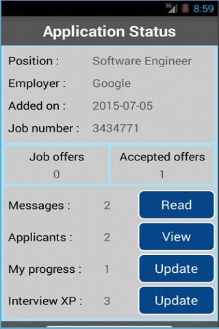 - به روز رسانی پیشرفت در برنامه های شما اگر شما یک پیشنهاد کار برای این موقعیت دریافت خواهید کرد.
