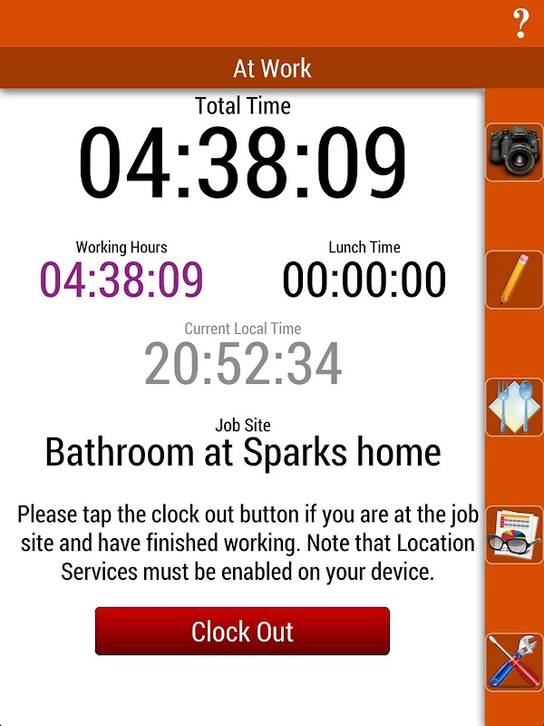 Time Tracker is a companion app to General Contractor Job Manager mobile application. It is free for employees whose employer is already using Job Manager. Time Tracker allows employees to clock in to specific jobs, clock in/out for lunch, track their own work hours and to send work related images and messages to employer and check their timesheet. Time sheets can be checked daily, weekly, monthly or yearly.