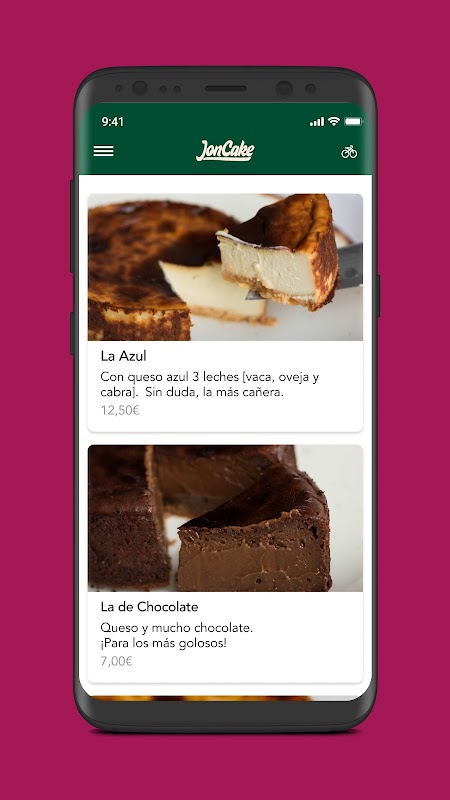 Con la app de Jon Cake podrás gestionar todos tus pedidos a domicilio o para llevar de unas tartas de queso que te harán querer repetir.
