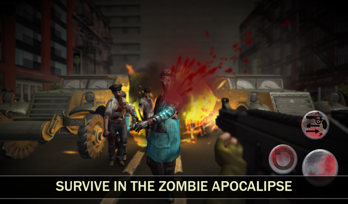 You appear in the infected city, full of hungry zombies with a gun and a knife. Repulse the first zombie assault and try to escape from the city in this zombie survival. Kill zombie infection on streets, behind the cars and even on roofs of zombie town in this zombie survival hunter game or you will be killed.