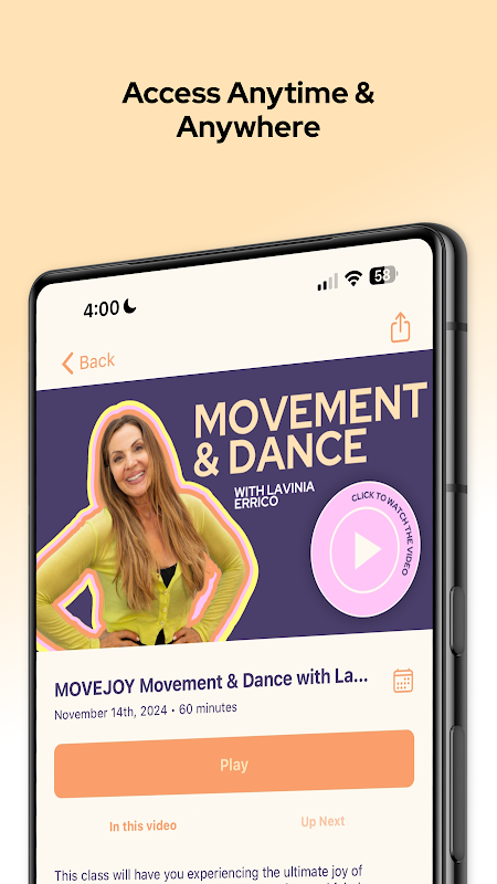 "MoveJoy بخشی از مراسم روزانه من شده است. حرکت با Lavinia یک موهبت بوده است. من یک برنامه کامل دارم و انجام MoveJoy به من انرژی لازم برای رشد تجارتم را داده است." - لیزا، 59