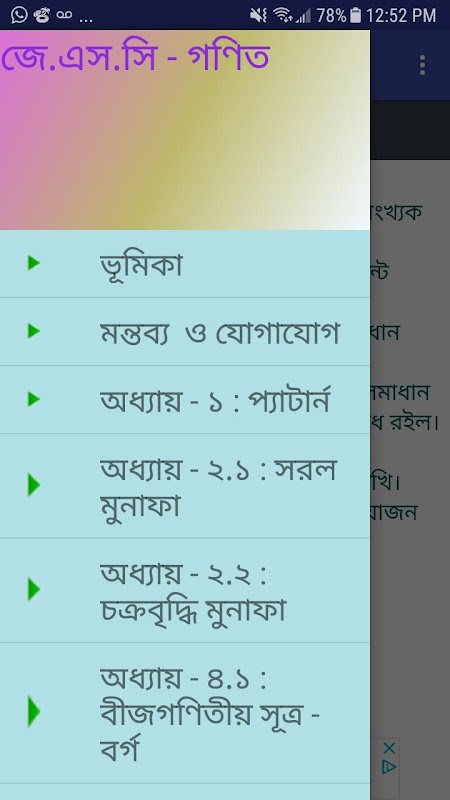 অষ্টম শ্রেণীর গণিত বইয়ের- প্রতিটি অধ্যায়ের প্রত্যেকটি প্রশ্নের সমাধান দেওয়া হয়েছে। প্রতিটি অধ্যায়ের যথাসম্ভব অধিক সংখ্যক MCQ প্রশ্ন দেওয়া হয়েছে। প্রতিটি অধ্যায়ের সৃজনশীল প্রশ্নের সমাধান দেওয়া হয়েছে। সহজে বুঝার জন্য বিভিন্ন ধরনের ফন্ট ব্যবহার হয়েছে।