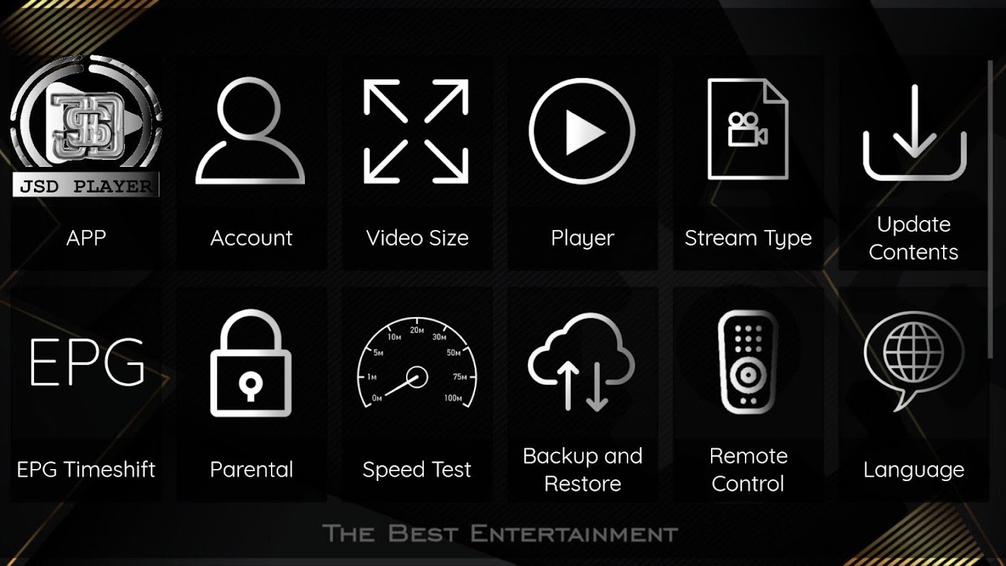 JSD PLAYER viene con dos ExoPlayer Buil-in y VLC Player con Streaming HLS adaptativo. No se requieren aplicaciones o reproductores de terceros. Diseño de interfaz de usuario simple para una fácil navegación.