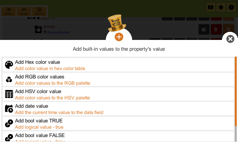 فرمهای ورودی همهکاره و گزینههای ویژگی، Json Designer انواع فرمهای ورودی متناسب با انواع دادههای مختلف را ارائه میکند، از جمله: رشتهها، اعداد، بولی (منطق)، رنگها (با انتخابگر رنگ)