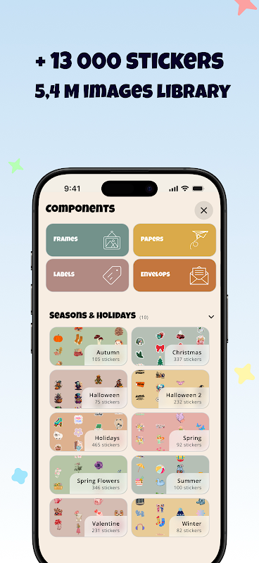 برنامه دفتر خاطرات و یادداشتهای خلاقانه - نقاشی، کلاژ، تزئین با بیش از ۱۲۰۰۰ برچسب.