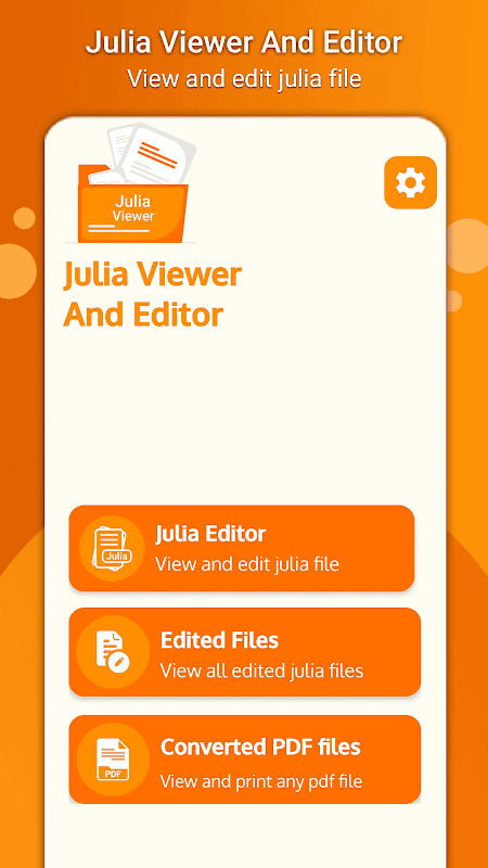 از طریق بازکننده فایل جولیا می توانید به راحتی فایل های جولیا را به pdf تبدیل کنید. همه فایلهای pdf تبدیل شده در حافظه دستگاه ذخیره میشوند و با حذف برنامه توسط کاربر حذف میشوند. نمایشگر جولیا نمایشگر پی دی اف داخلی خود را دارد که از طریق آن می توانید تمام فایل های pdf تبدیل شده را مشاهده کنید و همچنین فایل های پی دی اف دیگر را از حافظه دستگاه انتخاب کنید. همچنین می توانید فایل pdf را مستقیماً از نمایشگر pdf چاپ کنید.