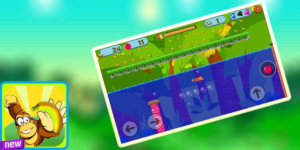 The small monkey is very hungry.So he is finding food in the jungle.But the is very large and danger.Some monsters are in the jungle.Your task is helping the jungle banana out of the jungle and collect more bananas.