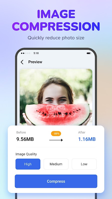 🏞️فشرده سازی تصویر: JunkOut به سرعت عکس ها و تصاویر بزرگتر را فشرده می کند و به شما کمک می کند فضای ذخیره سازی را به راحتی بهینه کنید.