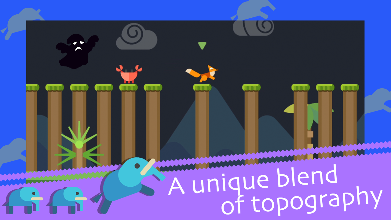 This is really jumping game. You need to avoid the monster's hunt, so you need to keep running forward. Click the button on the left side of the screen and you can jump one unit. You can jump two units by clicking the button on the right side of the screen. When adjusted to a specific location, there will be a special effect bonus that allows you to span multiple units in an instant.