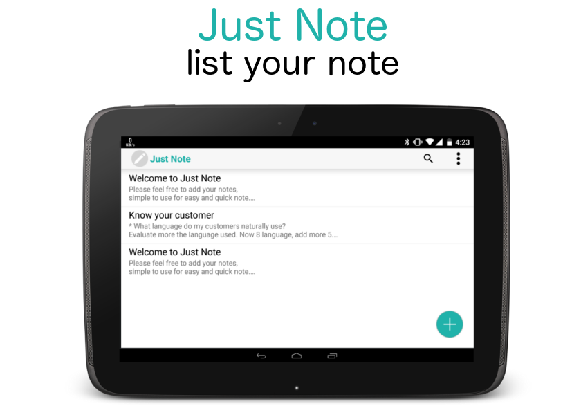 Flat design is a theme for Just Note. It give a focus what user really need. JUST NOTE it.