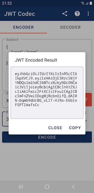 APKPure از تأیید امضای نرمافزار برای اطمینان از دانلودهای بدون ویروس APK JWT Codec - Encoder Decoder استفاده میکند.