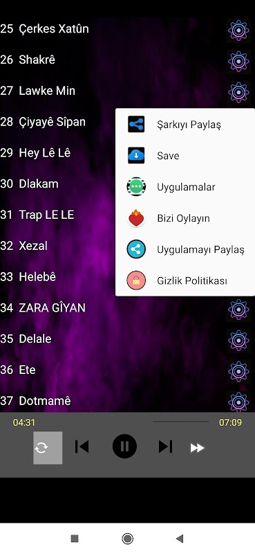 Kürtçe güzel eski ve yeni santıların şarkılarını dinleyebilirsiniz internete ihtiyaç duymadan her yerde telefonunuza uygulamayı indirdikten sonra kullanabilirsiniz. Bizi beğendiyseniz bizi oylamayı unutmayın.