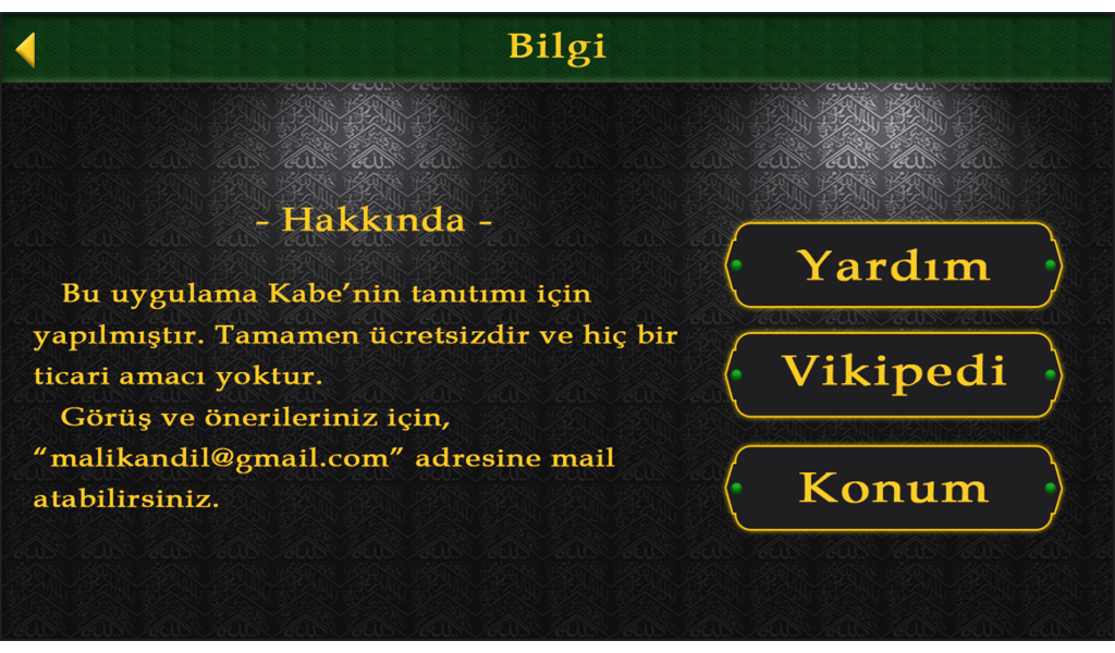 Have you ever seen inside of Kaaba? Well how much information you have about Kaaba? In this application, there is general information about Kaaba. And you can view solid model of Kaaba's interior and enviroment in 3D which was drawn based on actual size.