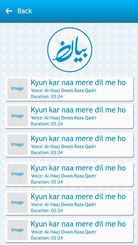 In this APP you will find most watching and Listening videos for Beautiful and Heart touching Bayans & Kalam. Our database consist of Urdu Bayans. We have gathered some excellent videos in HD quality for all Bayan Sherif lovers. Watch and listen on your smartphone with single tap.Life Changing Emotional Bayan and Naats.
