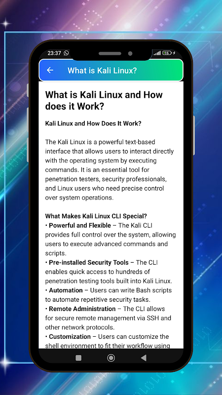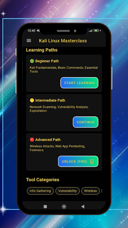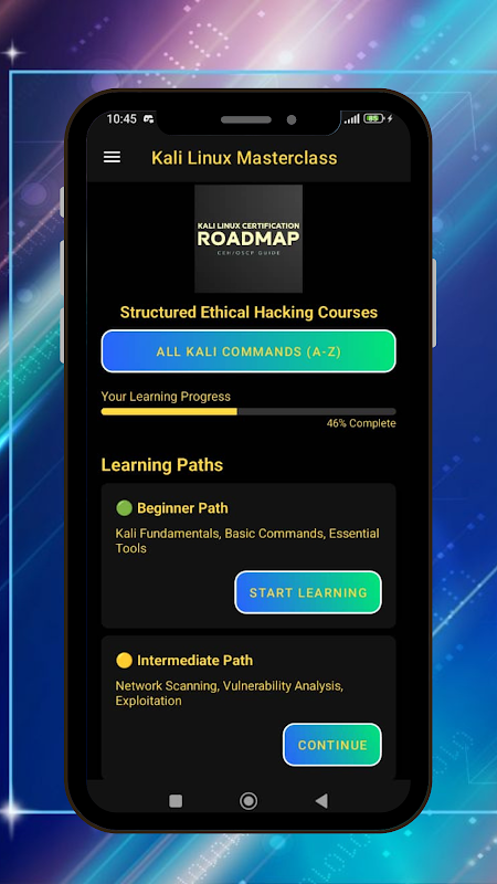 برنامه Kali Linux Masterclass پلتفرم آموزشی هک اخلاقی نهایی برای علاقه مندان به امنیت سایبری و متخصصان فناوری اطلاعات است. این برنامه برای کمک به تسلط بر دستورات و ابزارهای لینوکس کالی طراحی شده است، این برنامه ارائه می دهد: