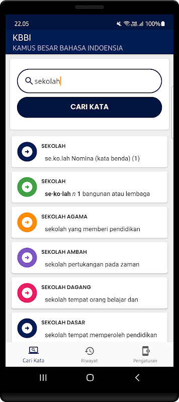 با ویژگی آفلاین (بدون نیاز به اتصال به اینترنت) برنامه Big Indonesian Dictionary برای KBBI برای کمک به کسانی از شما که می خواهند کلمات، عبارات و عبارات را به سرعت استاندارد و صحیح اندونزیایی جستجو کنند بسیار آسان است.