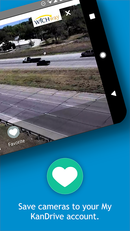 • مشاهده دوربین های ترافیک در سراسر ایالت. برای ذخیره دوربین ها برای دسترسی آسان، برای یک حساب کاربری My KanDrive ثبت نام کنید.